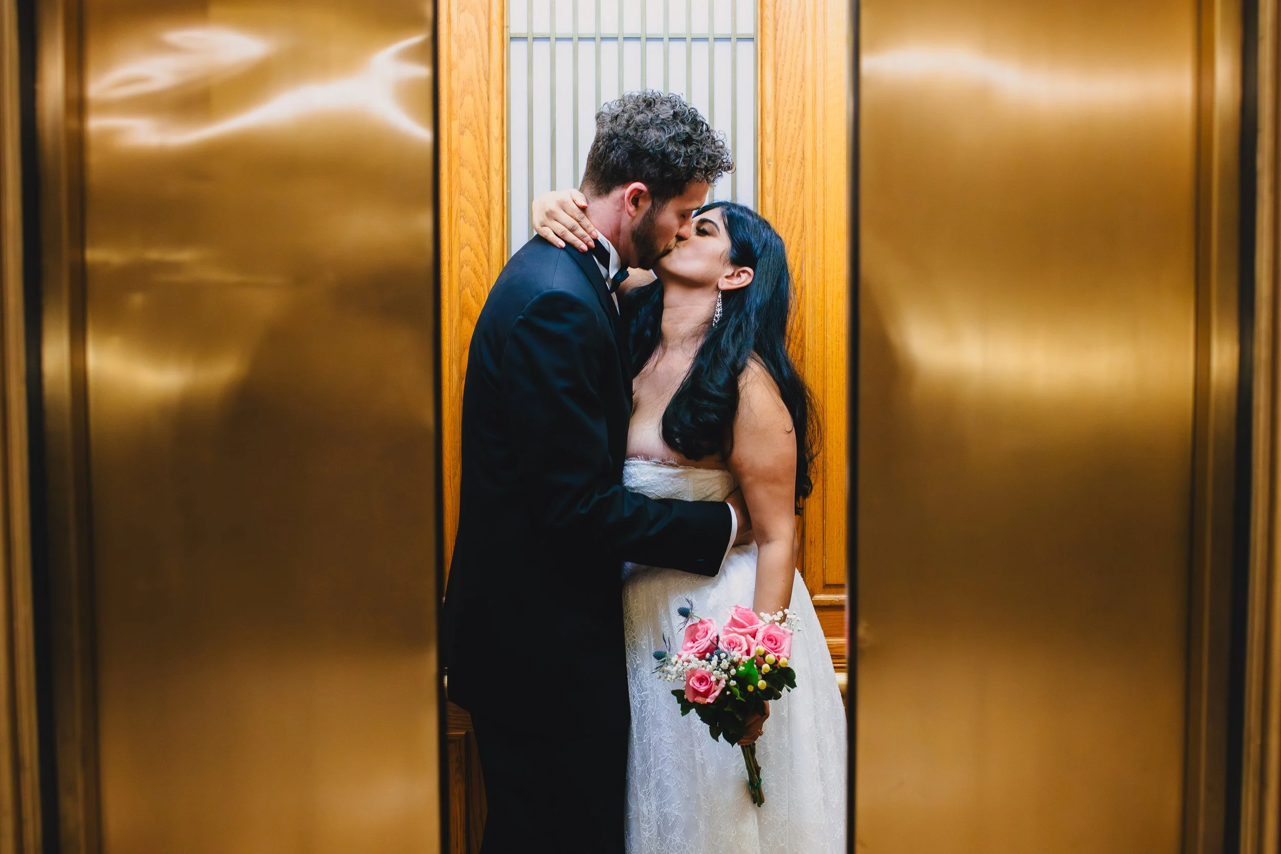 With a small circle of family, it was the kind of day that makes a perfect case for City Hall — elegant, easy, and a joy to photograph. A tip for photographers: watch the light and speak up. The officiant directed Aditi and Grant to stand centered between two beautiful vases during the ceremony. It makes perfect sense geometrically, however there was harsh light coming from the window that lit the couple very unevenly. I asked them to move slightly which allowed for a much better light and I think it worked out really well. So, there will be times when you’ll just have to make it work with what you have, but remember: when you can take control to make thing better for the couple — do it.